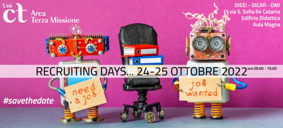 24 e 25 Ottobre 2022 - Recruiting Days - Unict Job Day for Engineering, Mathematics and Computer Science.