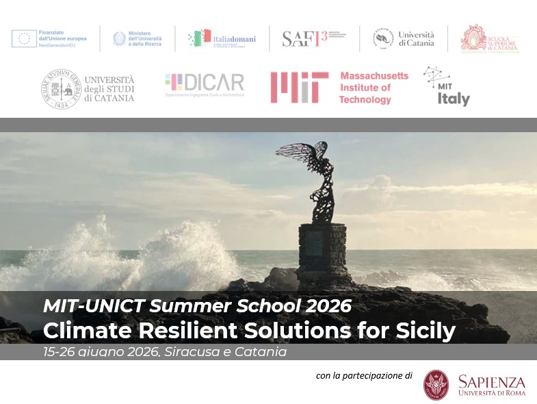 La MIT-UNICT Summer School 2026 "Climate Resilient Solutions for Sicily" , organizzata in collaborazione tra l'Università di Catania e il Massachusetts Institute of Technology di Boston, e con la collaborazione dell'Unversità La Sapienza di Roma, si terrà a Siracusa e a Catania dal 15 al 26 giugno 2026.