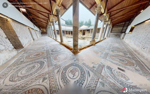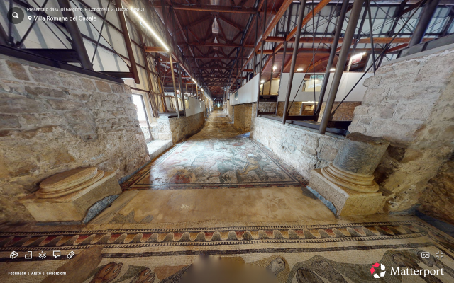 Il modello 3D navigabile e fruibile tramite VR con visori Oculus Quest viene sviluppato nell’ambito di un Protocollo d’Intesa con la direzione della villa Romana del Casale. L’obiettivo è la divulgazione del grande patrimonio musivo della Villa Romana del Casale. L’attività è tutt’ora in corso con continui aggiornamenti.